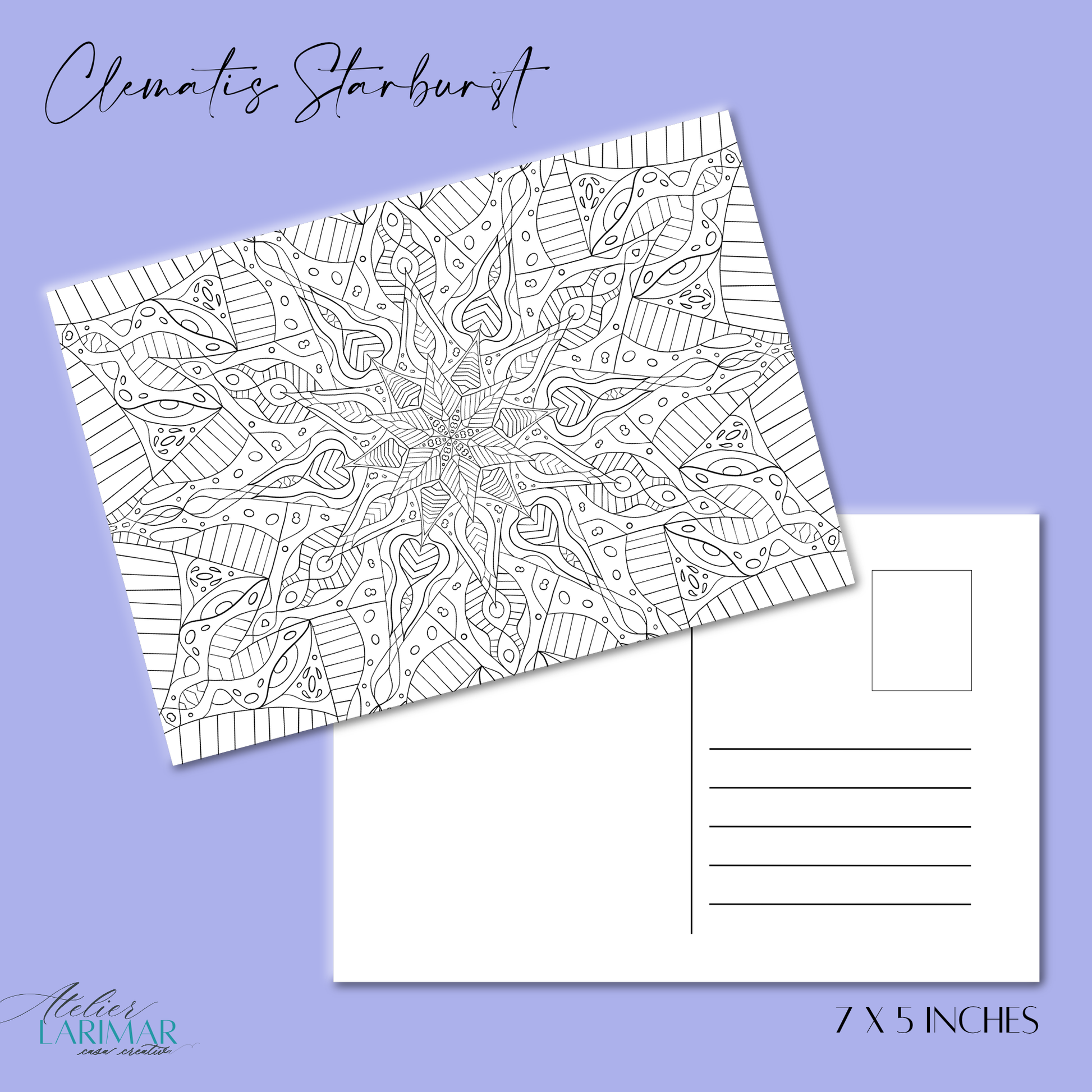DIY Clematis Starburst Mandala 7x5in Postcard (free US shipping)