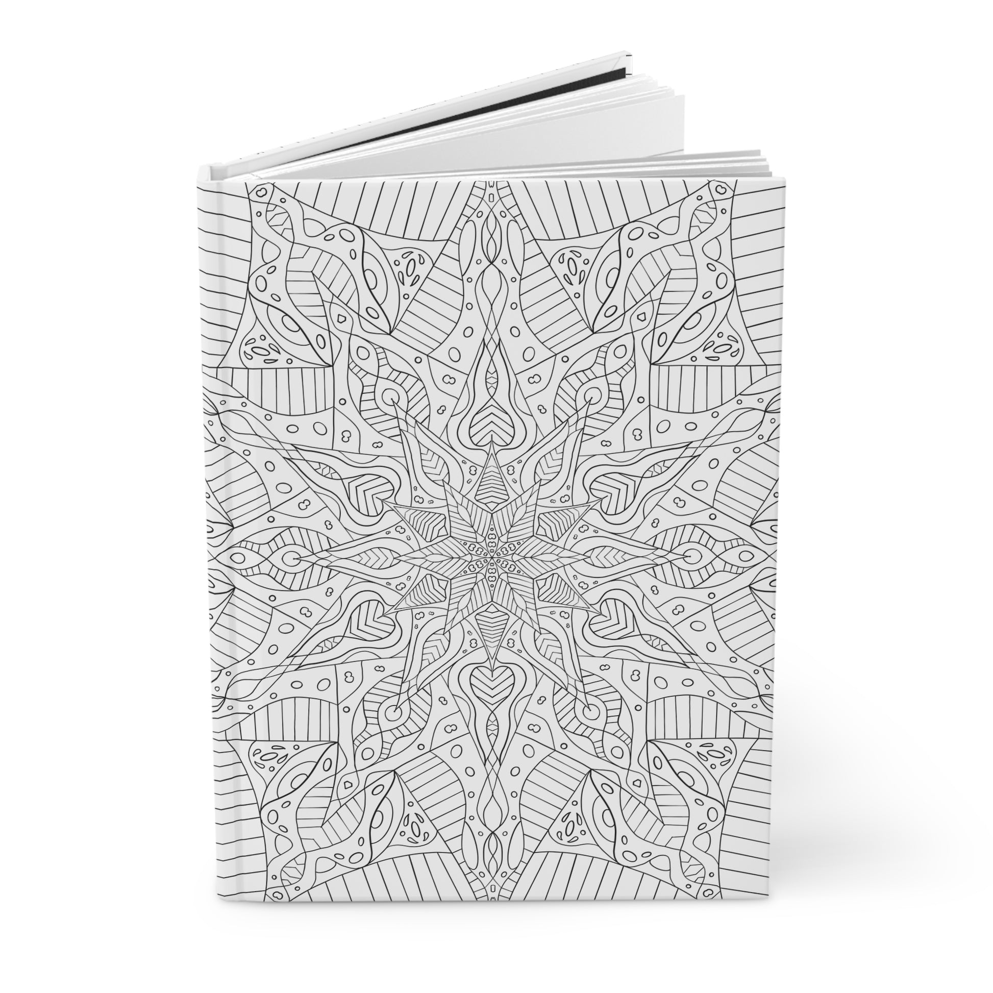 Hand-drawn Mandala Hardcover Journal was inspired by Clematis Starburst flower. This Mandala Hardcover Journal is perfect for creatives seeking inspiration. Its matte laminated cover not only lends a chic, smooth appearance but also ensures durability for daily use. The bright, eye-catching colors of the full wraparound print invite you to express your thoughts and ideas freely.